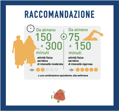 L’OMS riporta le seguenti raccomandazioni: “L’attività fisica dovrebbe essere raccomandata agli adulti con normale cognizione per ridurre il rischio di declino cognitivo” e “L’attività fisica potrebbe essere raccomandata ad adulti con MCI per ridurre il rischio di declino cognitivo”.