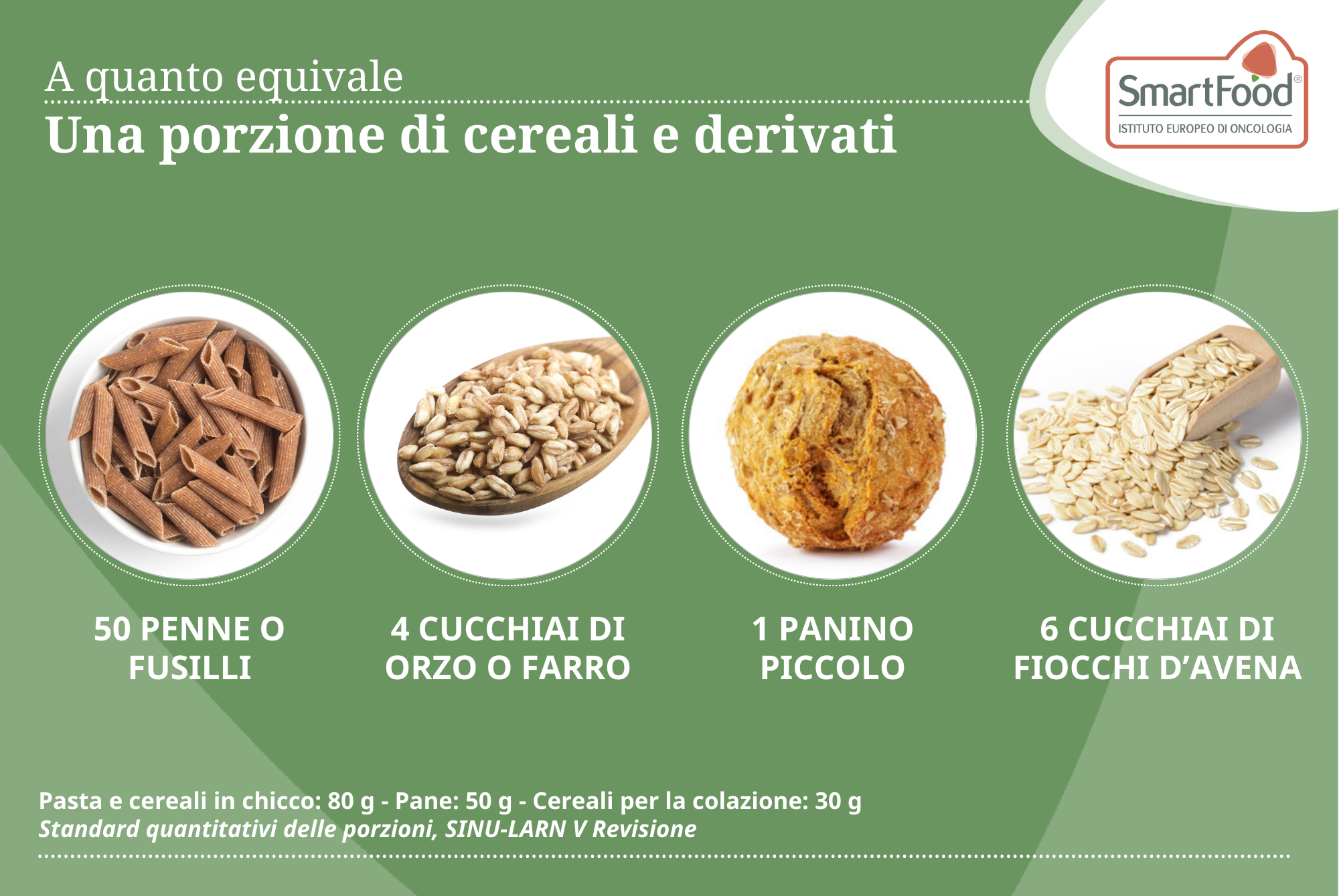 Fonte: Tabelle porzioni standard dei principali alimenti - Livelli di Assunzione di Riferimento di Nutrienti ed energia per la popolazione italiana (LARN) V Revisione- Società Italiana di Nutrizione Umana.