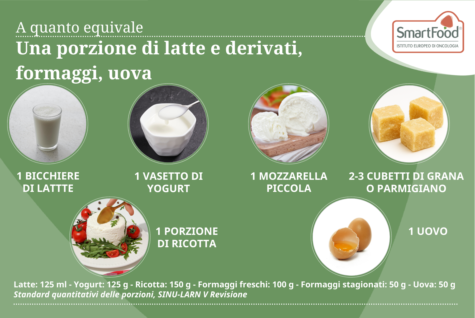 Per altri può essere di aiuto utilizzare gli utensili da cucina per visualizzarne la quantità. Un cucchiaio di olio extravergine d’oliva corrisponde a 10 ml, 3-4 cucchiai di legumi secchi corrispondono alla porzione standard di 50 grammi, oppure 1 bicchiere piccolo è pari a 125 ml di latte.