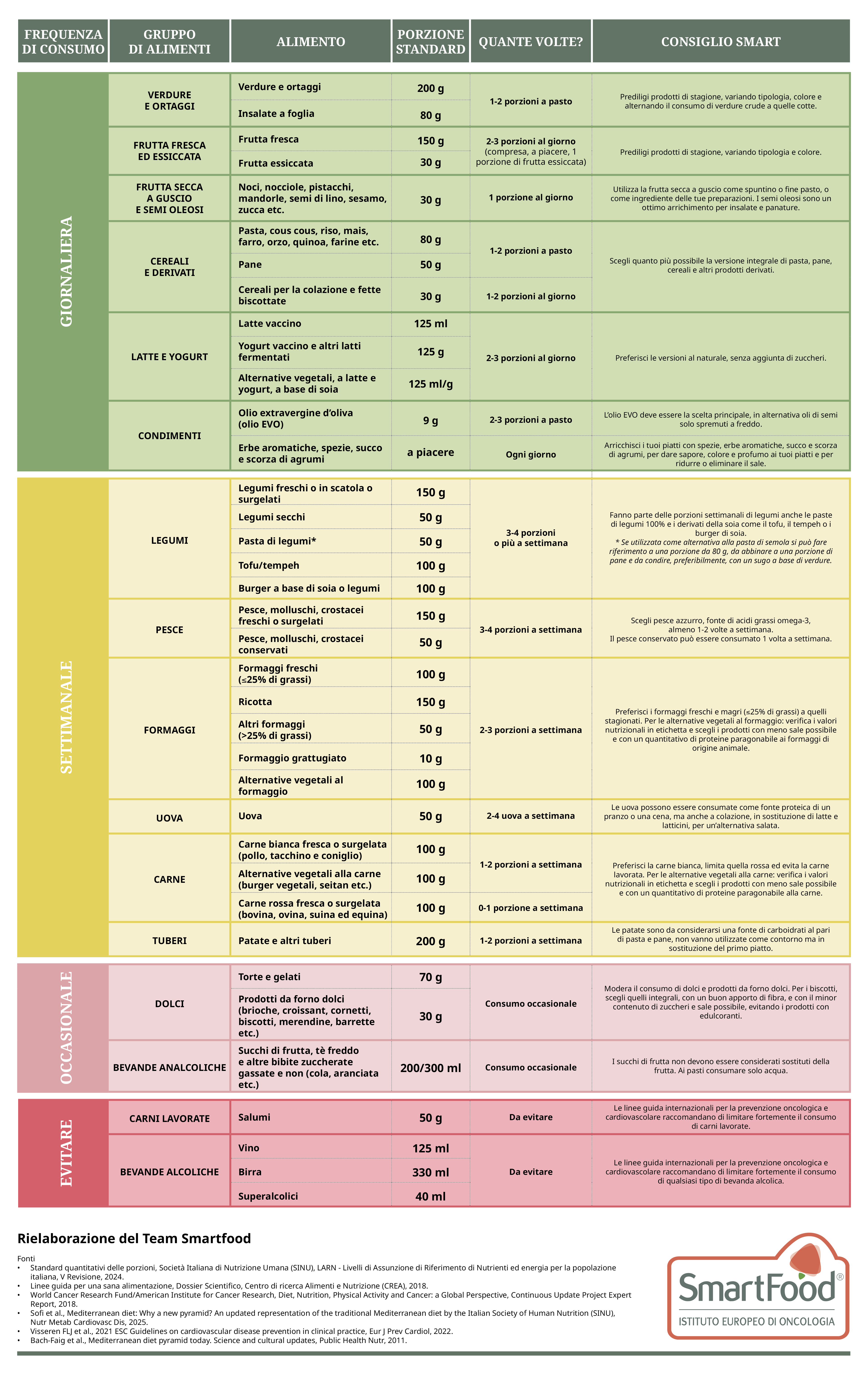 - Cena circa 600-700 kcal: una porzione di pesce, riso integrale, verdure, olio extra vergine per condire e un frutto.