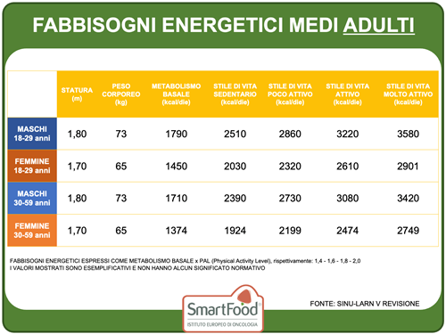 Fabbisogni energetici medi negli adulti