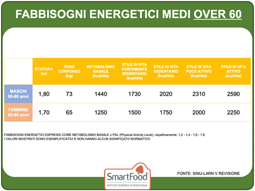 Fabbisogni energetici medi negli over 60