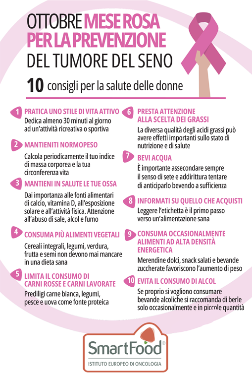 Il tumore del seno è una patologia complessa e multifattoriale, in cui il rischio non è determinato solo da fattori non modificabili come l’età, il sesso, la genetica ma anche da fattori che ogni donna è in grado di modificare come l’alimentazione e lo stile di vita.