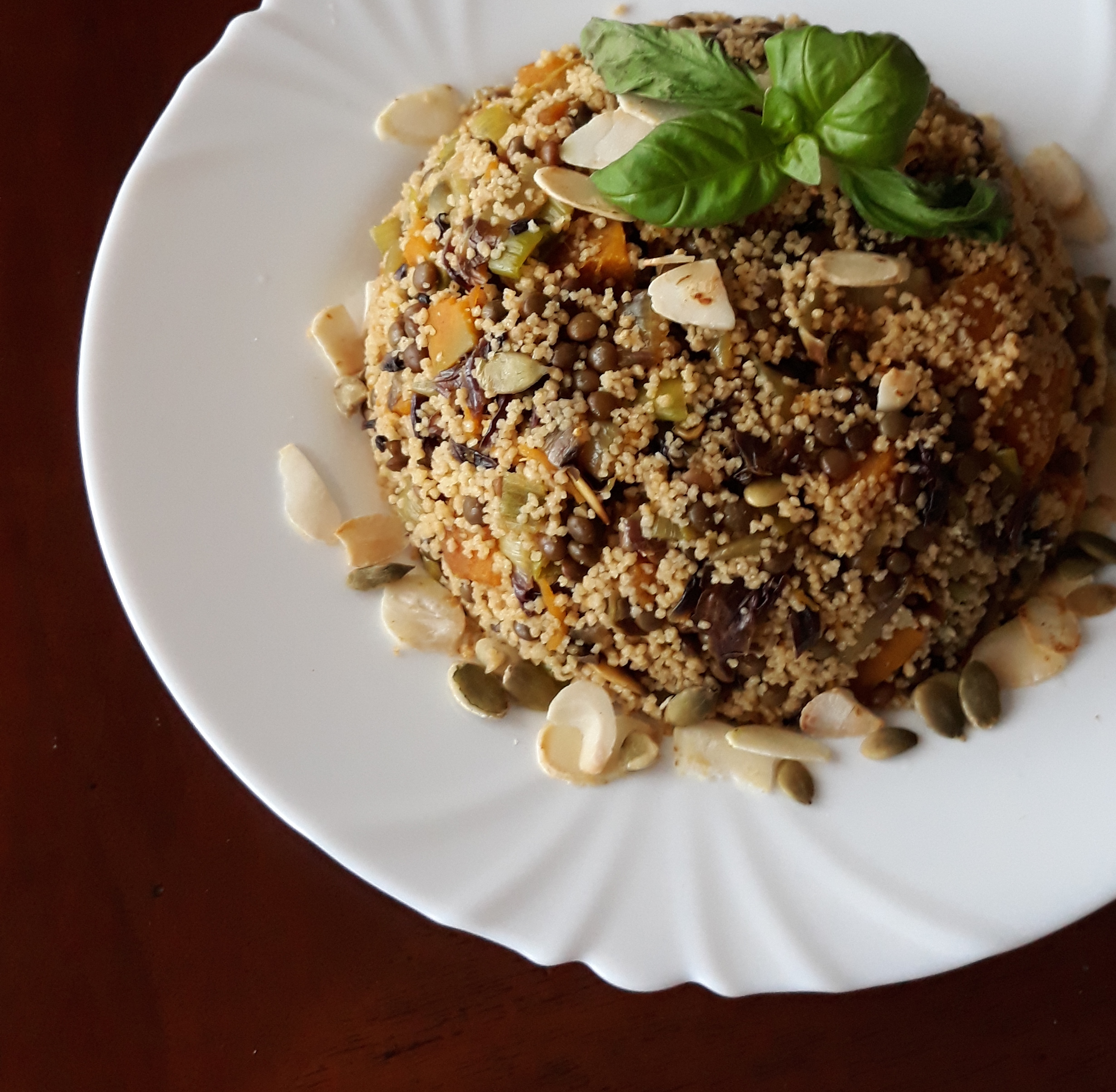 Questa ricetta rende onore ai legumi, ingredienti versatili e mai banali. Le lenticchie lo sono particolarmente, in quanto, scegliendo i formati più piccoli o decorticati, come le rosse, sono adatti sia ai bambini sia a chi soffre di fastidi addominali quando li mangia. La melagrana, di stagione nei mesi autunnali, arricchisce il piatto di vitamine come i folati, la vitamina K e la vitamina C. Il brillante colore rosso dei chicchi della melagrana è dovuto alla presenza delle antocianine, molecole benefiche per la salute cardiovascolare.