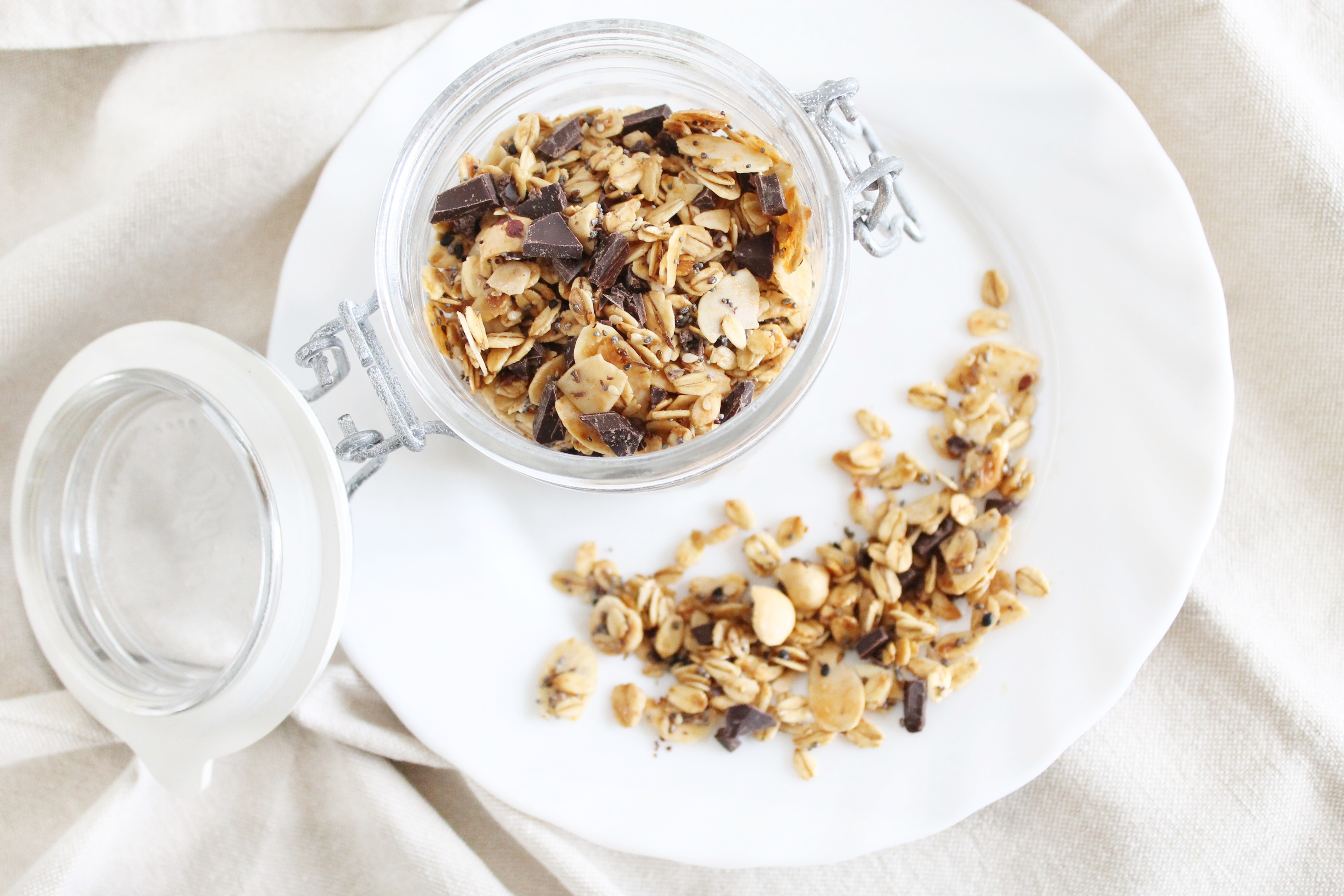 - Versione "cotta" (più croccante): stendere uniformemente il müesli sulla carta da forno e infornare a 180°C per 5-10 minuti, mescolando di tanto in tanto. In questo modo gli ingredienti si tosteranno e prenderanno ancora più sapore.
