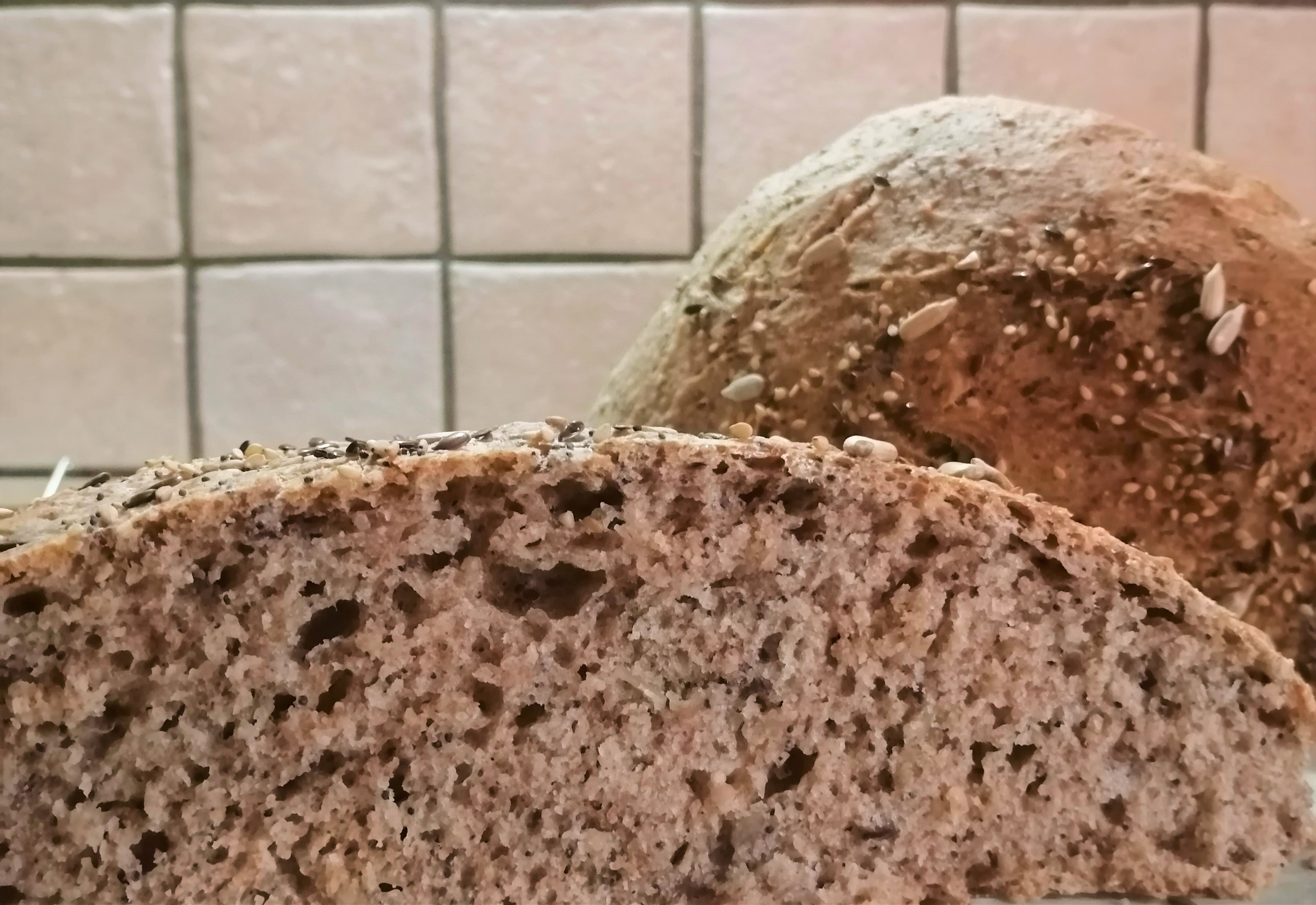 Non sempre è semplice reperire in commercio tipologie di pane a base di farine diverse da quelle raffinate, se si ha la possibilità di prepararlo in casa, quindi, perché non divertirsi con i mix più vari? Un’interessante associazione si trova in questo pane, che contiene farina di frumento integrale e farina di grano saraceno. Entrambe hanno un buon contenuto di fibra, composto utile per la salute del nostro intestino. La presenza di un mix di semi oleosi, inoltre, dona sapore, permettendoci di non utilizzare il sale, ed aggiunge fibra e preziosi grassi buoni, ottimi per il mantenimento della salute cardiovascolare.