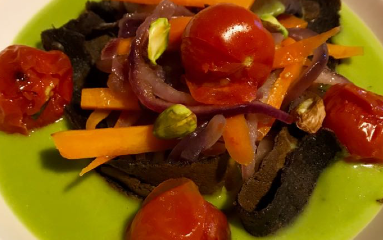 3. Per la crema di piselli: far bollire i piselli in acqua poco salata. Una volta cotti, frullare 2/3 dei piselli con un goccio di acqua fredda e poi aggiungere il pepe.