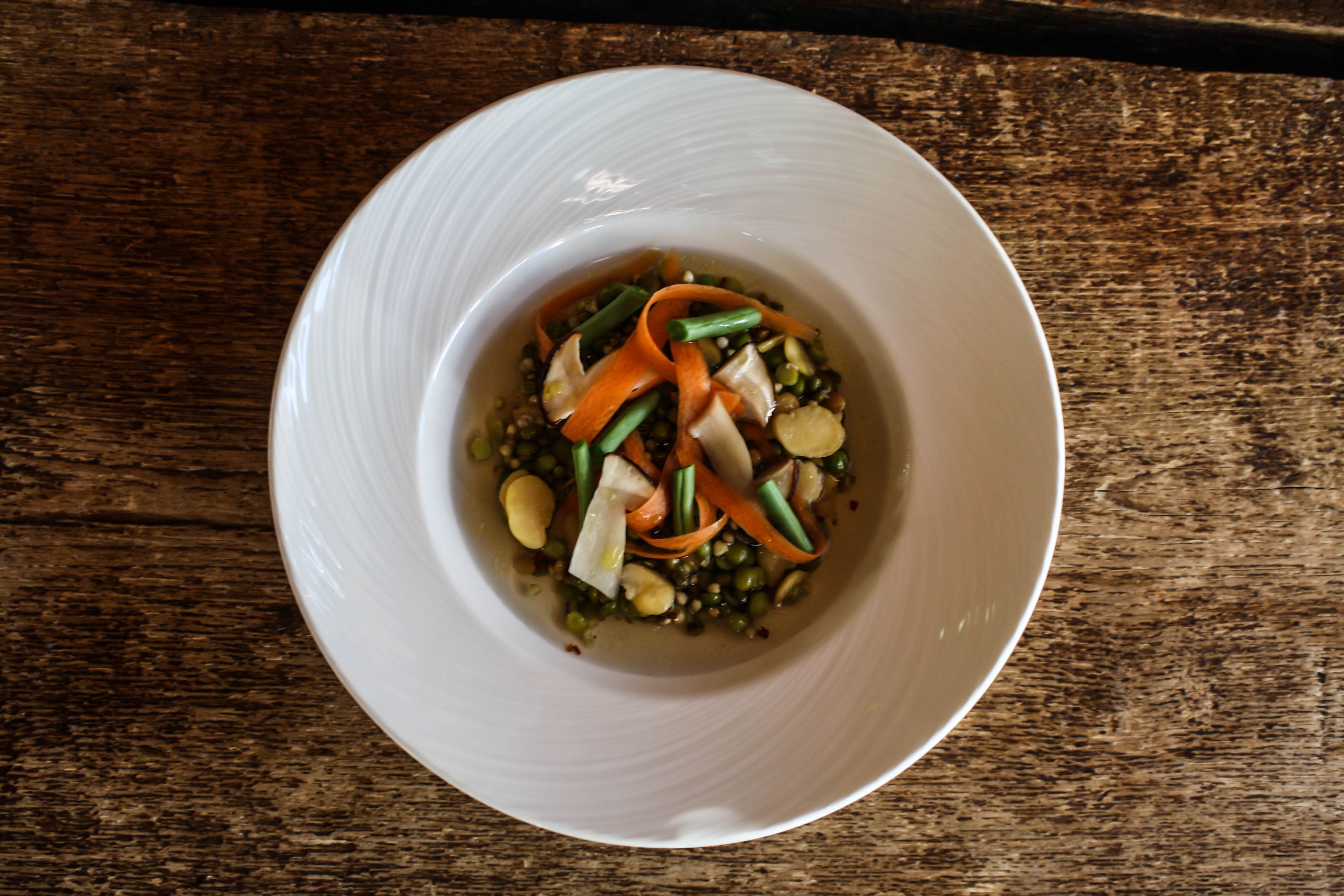 Questa ricetta, realizzata dallo chef Franco Aliberti, nasce dalla collaborazione tra Smartfood e AMìO-Legumi che insieme hanno sviluppato la linea di zuppe a base di legumi e cereali ZuppamiXlegumi (ora Nutrigood Mix). Ciascun mix è un’equilibrata combinazione di carboidrati e proteine, che rappresenta la base per il Piatto Sano, un pasto completo e salutare con tutti gli aminoacidi essenziali. Protagonista della ricetta “Terra” è il mix ZuppamiXlegumi e Farro che oltre a questo cereale contiene lenticchie, adzuki rossi e verdi, piselli.